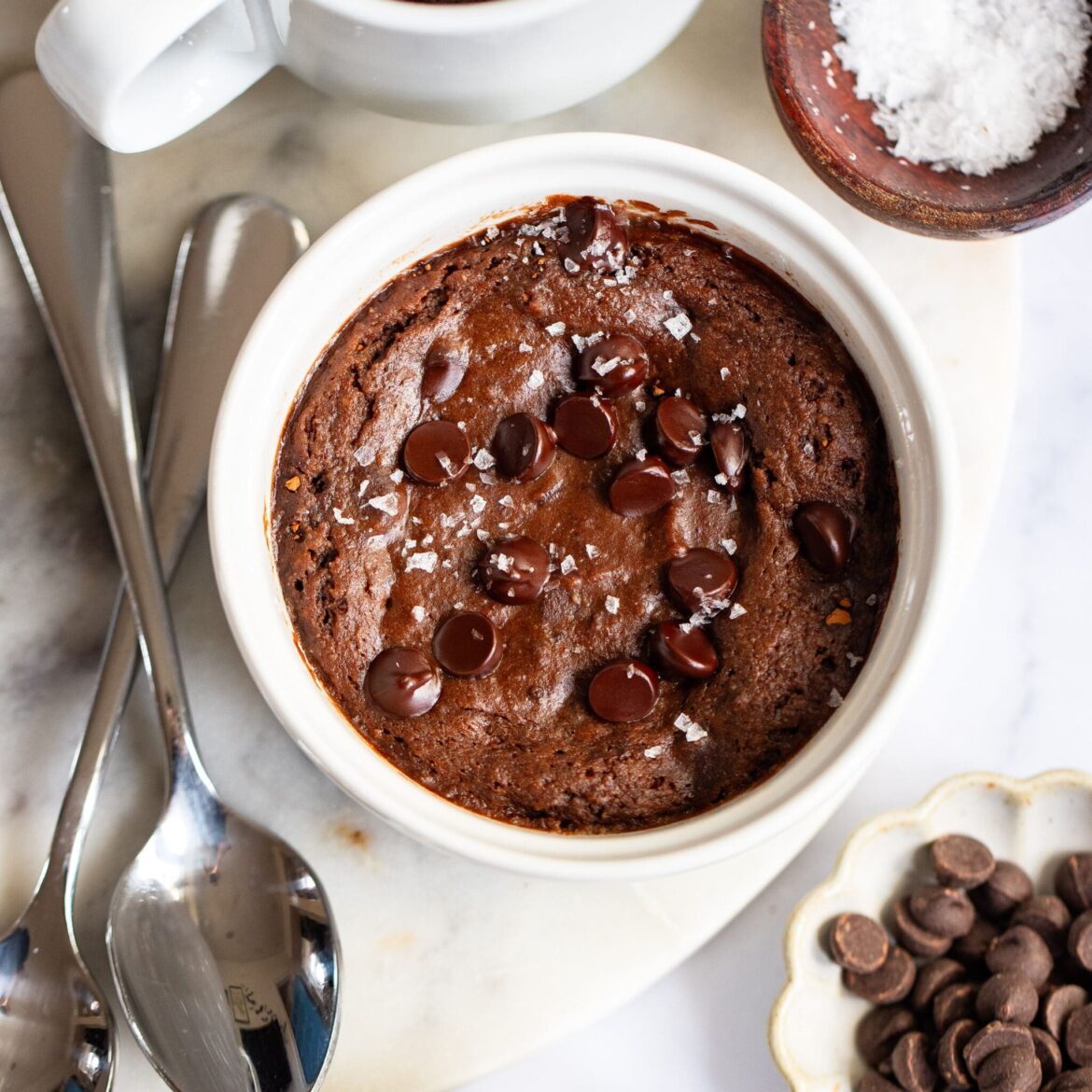 Microwave: microwave for 45 seconds to 1 minute. The brownie is ready when the center is slightly gooey and the edges bounce back when pressed. Sprinkle with flaky sea salt to serve (if desired). For an indulgent treat, top with some whipped cream or ice cream.