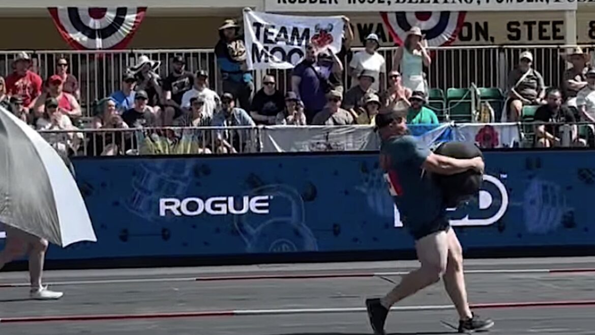 Boudreault ran the lone heat, returning to the arena where he scored his WSM podium in 2021. He chose to lift the first bag vertically instead of the more common horizontally, and it was unclear how much time it cost him. A fast fourth bag led to him pacing the stage, confident that he took the lead—his time of 42.81 seconds was almost that.