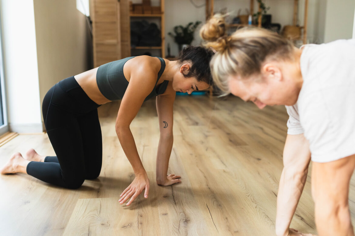 You can also do this stretch while in quadruped position on all fours, just repeat the same over and under positions with your palms, and apply gentle pressure into the floor.