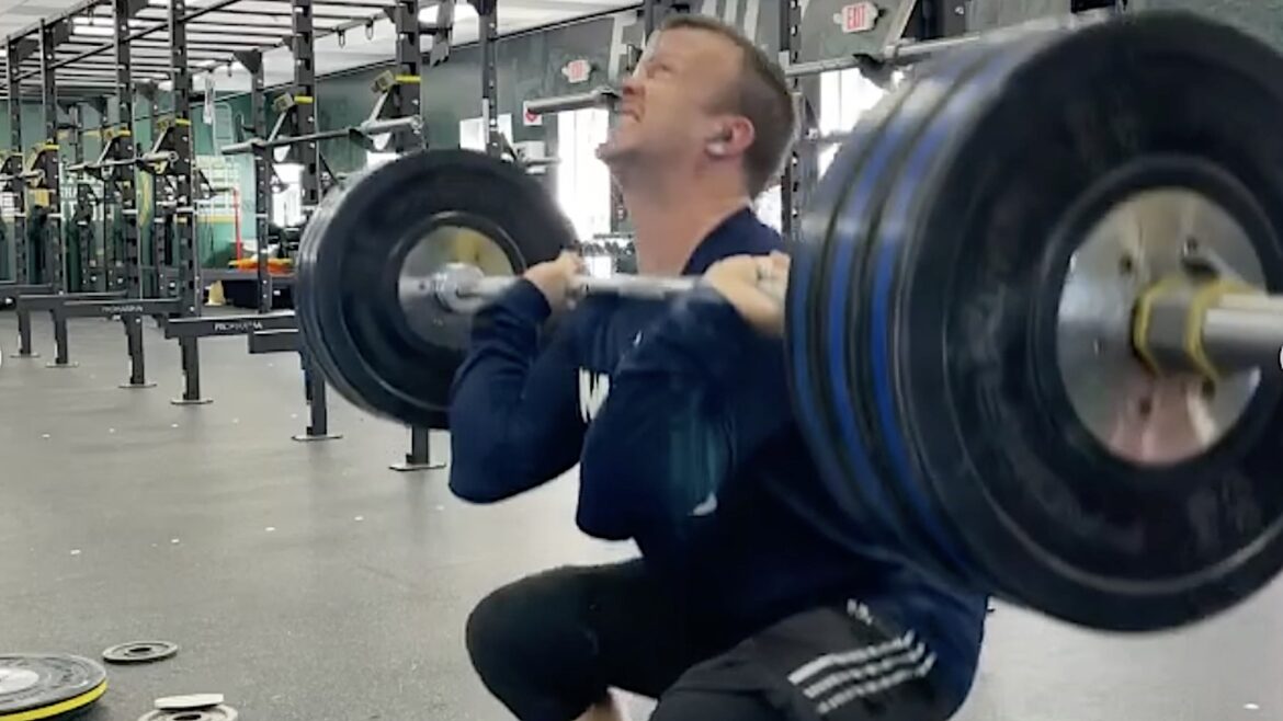 “Nine weeks of back squats, nine weeks of clean deadlifts, nine weeks of front squat, and then a huge max out,” Lackey prescribed.