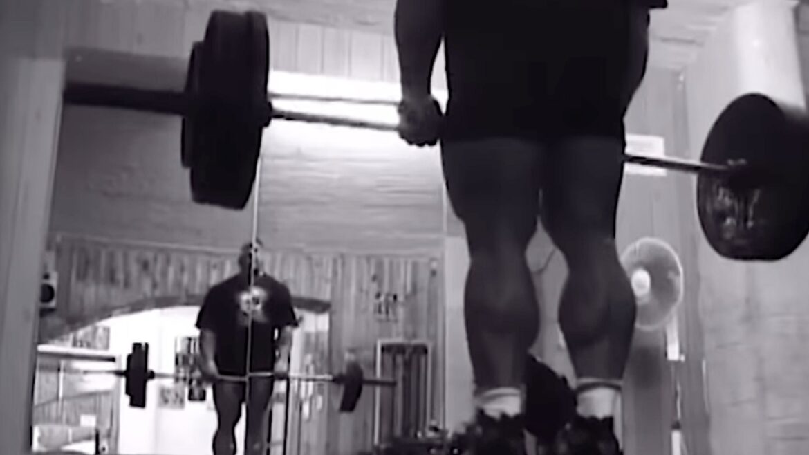 That focus is why Yates used lifting straps to support his grip. He lowered the weight until it was around his shins before standing tall. The weight plates themselves never touched the ground until he was done, which helps keep the emphasis on the hamstrings.