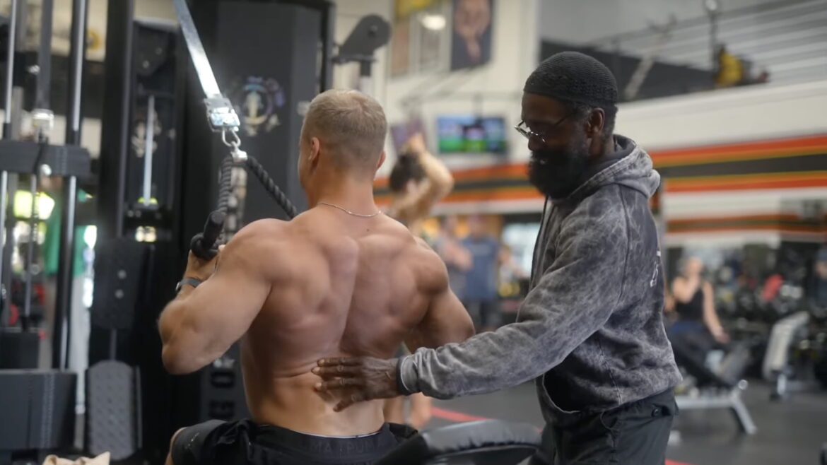The grizzled veteran of the muscle-building community started the session with the seated cable row, a staple in just about every bodybuilding back workout. A horizontal pull movement that effectively engages your lats and traps, the seated row can quickly deviate from a back-builder to a biceps-drainer if you’re not careful.