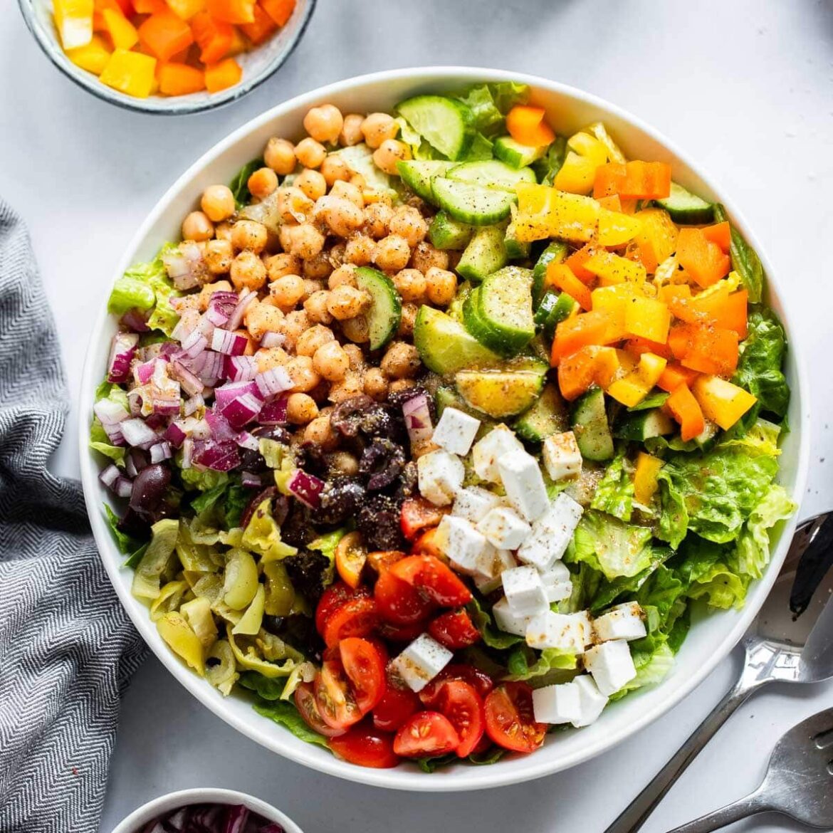 Yes! The Mediterranean diet is considered to be one of the healthiest diet patterns and this salad features many of the Mediterranean foods associated with positive health benefits.