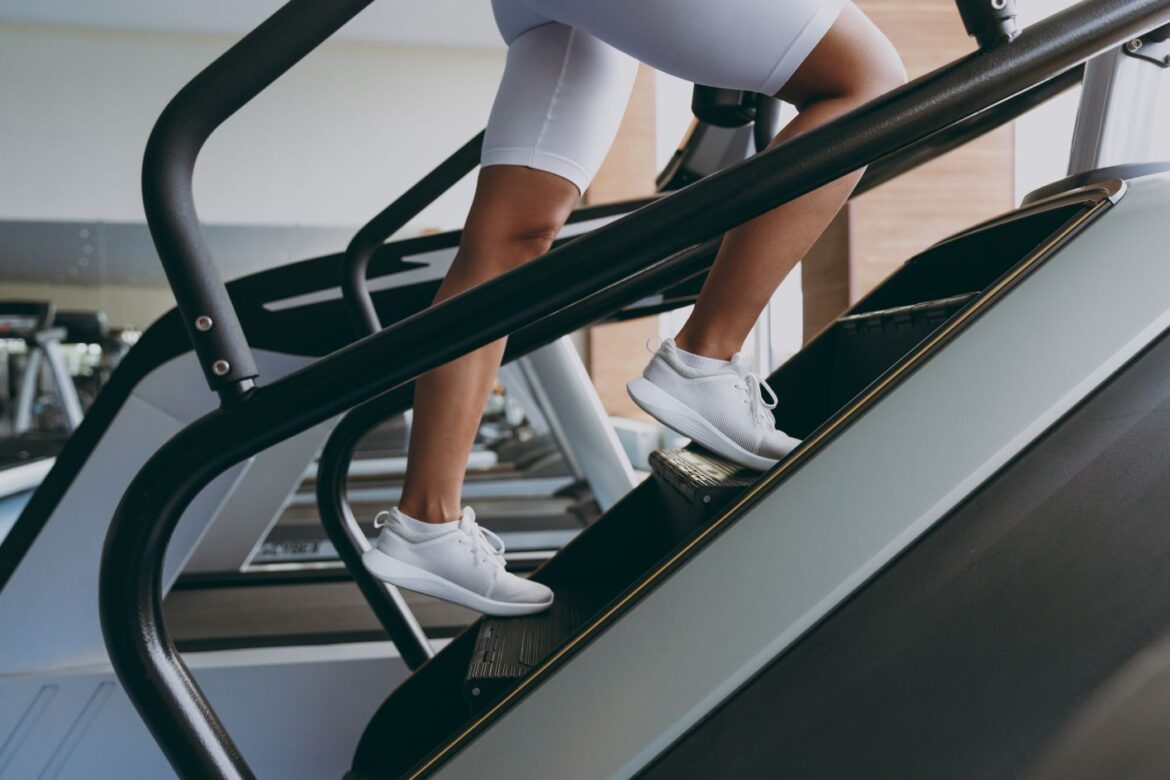 When you mount the StairMaster or stair climber machine, you engage every major leg muscle: your quadriceps, hamstrings, calves, and glutes.