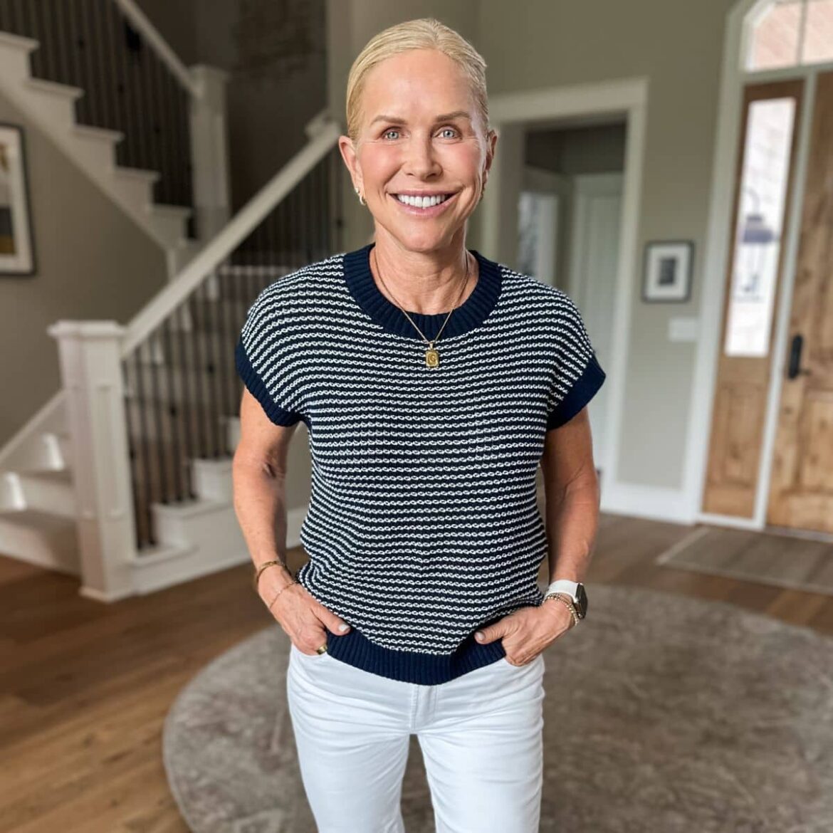 Let’s talk about tops that actually work with our bodies because I hear you. I’ve gotten messages and comments from many of you saying, “Chris, we love your style, but not all of us want to tuck things in or show our stomachs anymore.” And I get it. While I still enjoy a cute crop or a tucked in shirt now and then, I also know what it’s like to dress a midlife body that’s shifting-hello menopause belly fat!